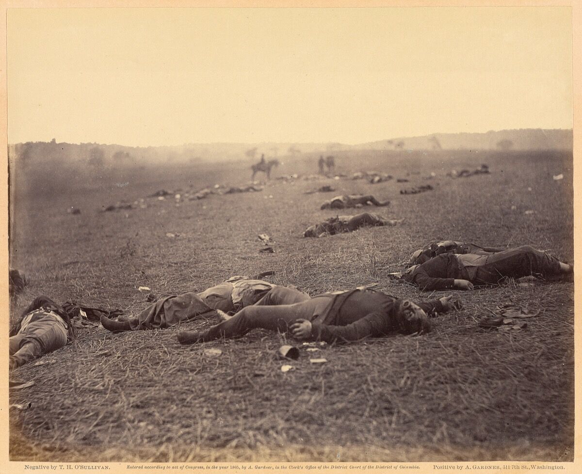 Gettysburg was the most brutal battle in the war, which killed about 50,000 troops during the three days from July 1 to July 3, 1863. O'Sullivan captured the gloomy, deadly landscape, covered with the bodies of those killed.